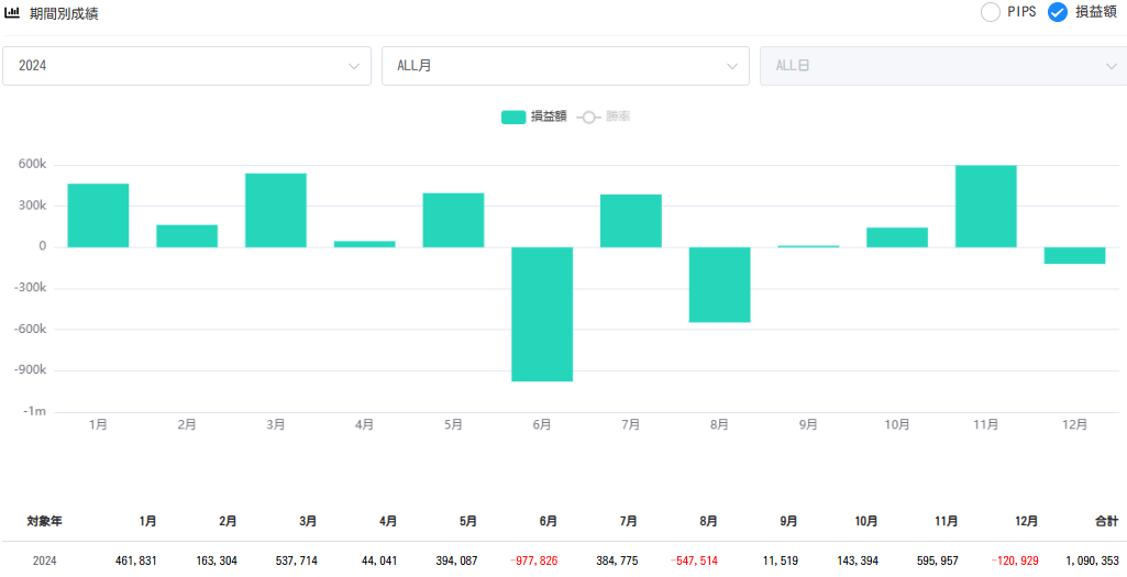 ※レッツリアルの口座管理システムの仕様上実績金額に手数料・スワップの金額は含まれておりません
