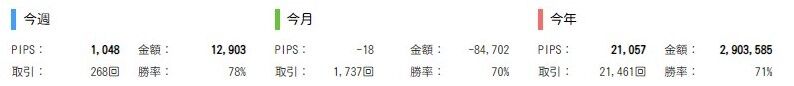 ※こちらのウィジェットのグラフは固定ロットではなく自分でロット調整した金額ベースのグラフです。よって公式のPIPSベースグラフの形と異なります。公式はPipsベースの収益グラフで、固定ロットでやった場合のような感じになります。クリックすれば販売ページ公式がご覧になれます。