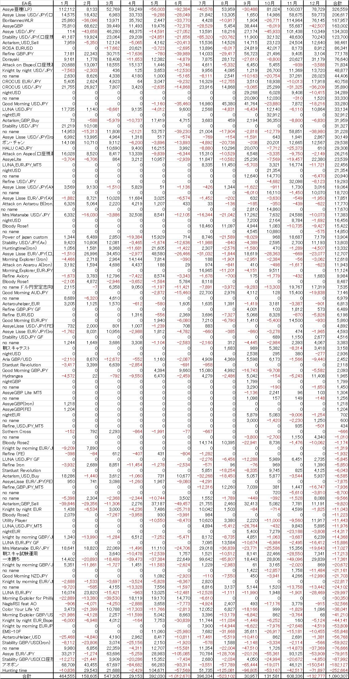 過去分全履歴は稼働中・停止すべてのEAの成績